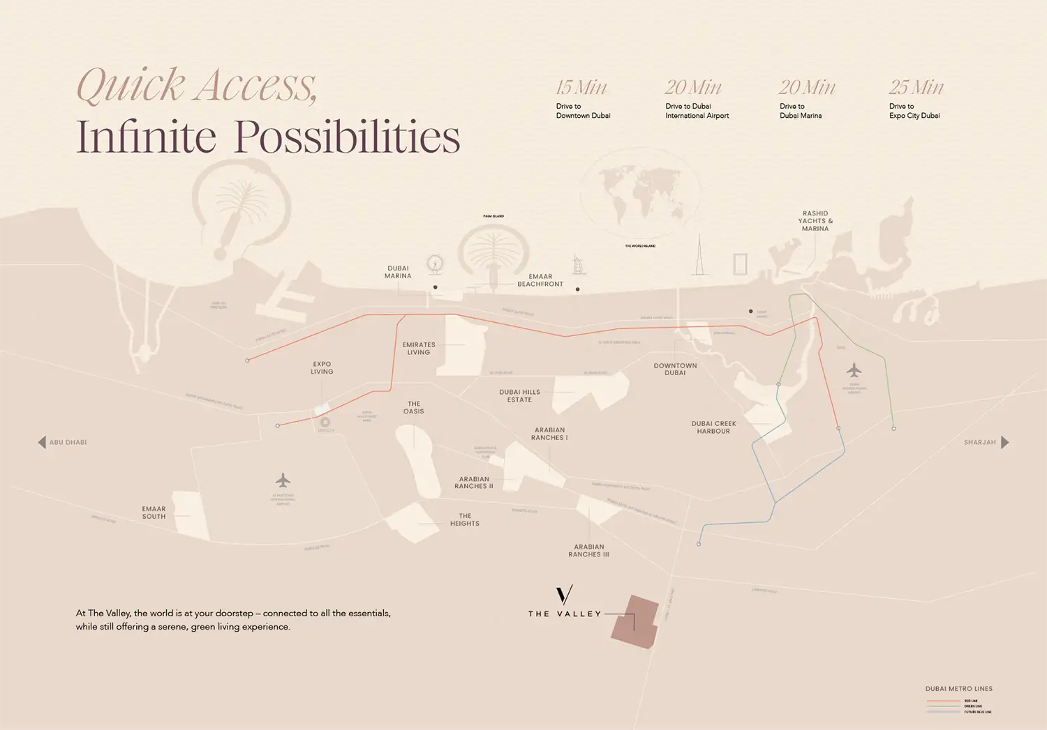 Strategically located within The Valley, the community provides seamless connectivity to major UAE destinations while maintaining a calm suburban atmosphere. Residents benefit from nearby schools, retail outlets, leisure hubs, and sports facilities, ensuring everyday convenience within a vibrant master-planned neighbourhood.