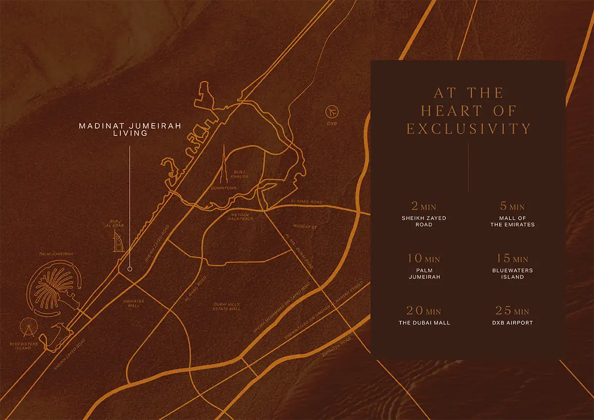 Ideally located near Umm Suqeim Street and Al Wasl Road, the development provides easy access to Sheikh Zayed Road and Mall of the Emirates, making it one of the most desirable coastal addresses in Dubai.