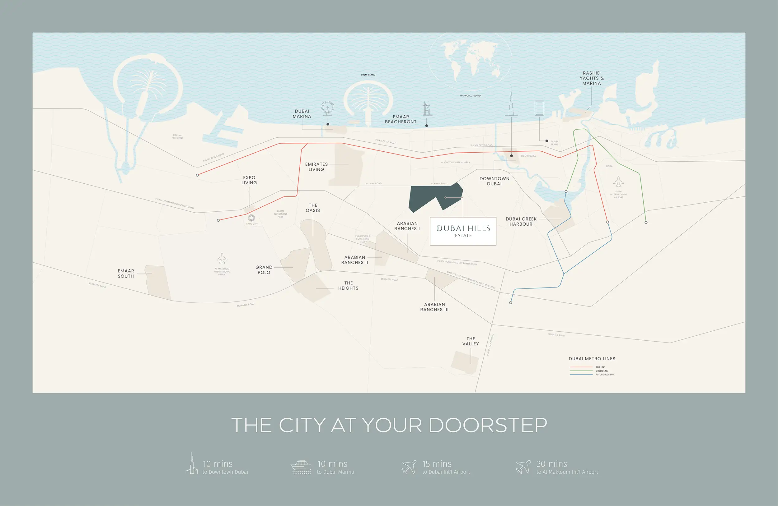 Located in the heart of Dubai Hills Estate, the development provides excellent connectivity via Al Khail Road, with quick access to Downtown Dubai and Dubai Marina. Residents enjoy proximity to Dubai Hills Mall, top international schools, healthcare facilities, and the expansive Dubai Hills Park.